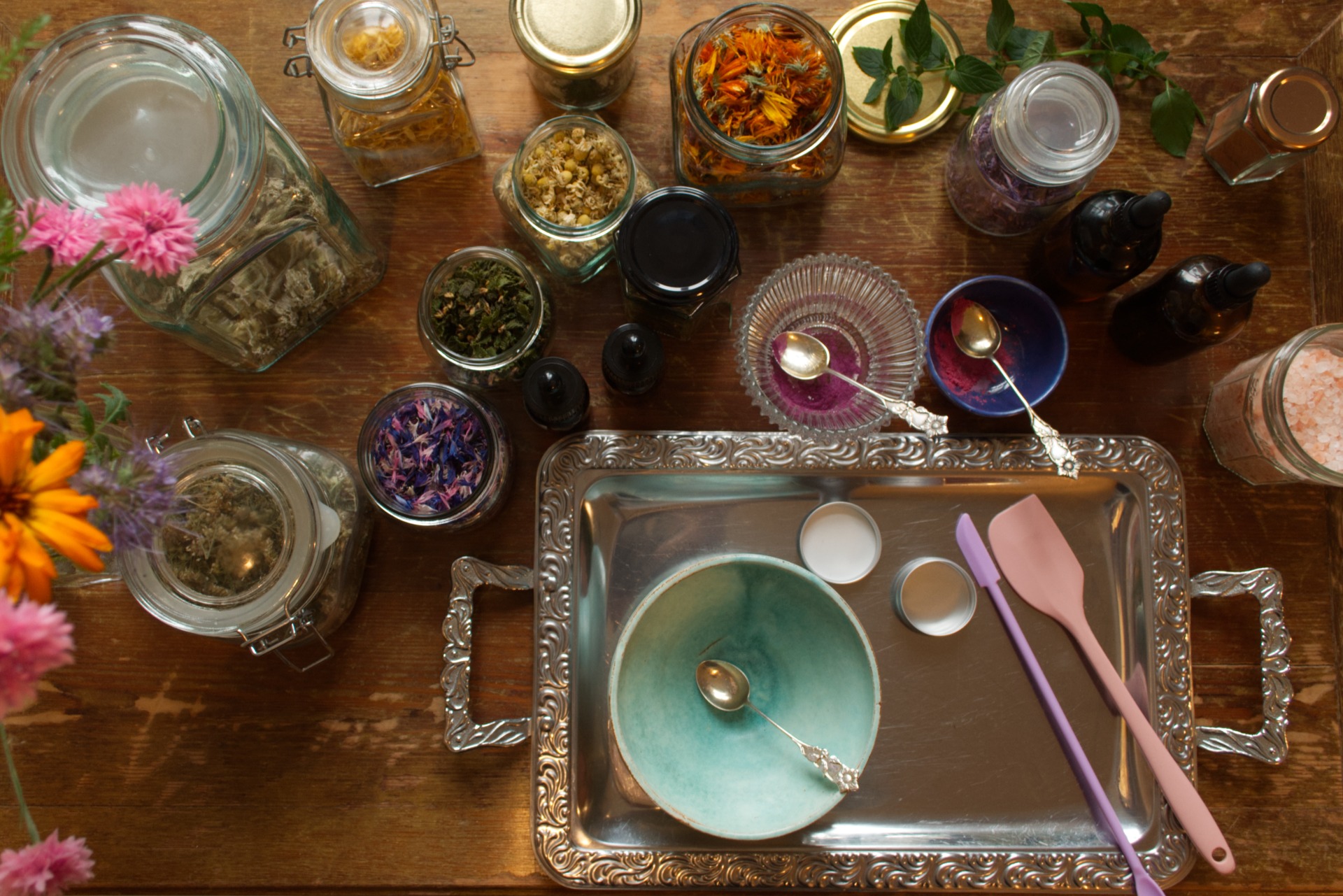 Sadonkorjuulounaan jälkeen valmistamme itse luonnonkosmetiikkaa, kuten kasvoöljyä, deodoranttia ja puhdistusmaitoa. Jokainen voi valita juuri itselleen sopivat ainekset ja tuoksut.